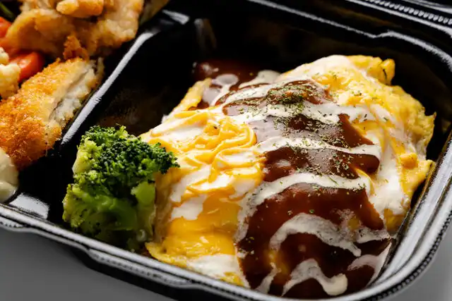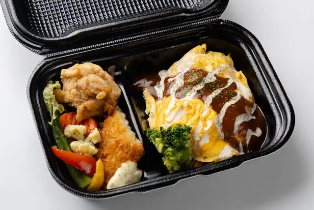当店自慢のメニューの一つであるオムライスをメインにしたお弁当です。