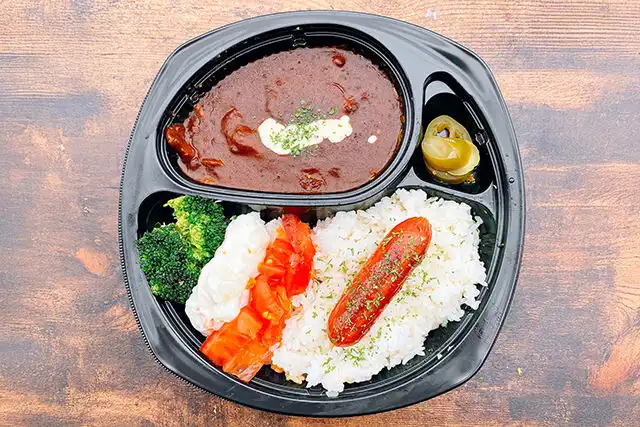 ごはん200g/ハヤシルー/トマト/ポテトサラダ/ブロッコリー/ウインナー/ピクルス
