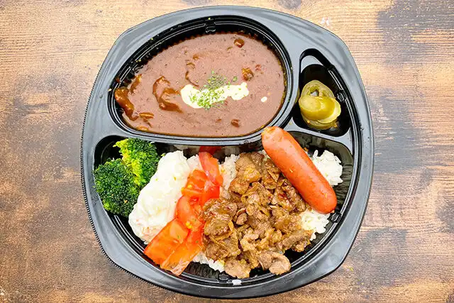 ごはん200g/ハヤシルー/トマト/ポテトサラダ/ブロッコリー/ウインナー/生姜焼き/ピクルス