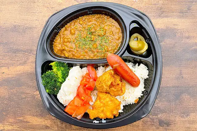 ごはん200g/キーマカレー/トマト/ポテトサラダ/ブロッコリー/唐揚げ/ウインナー/ピクルス