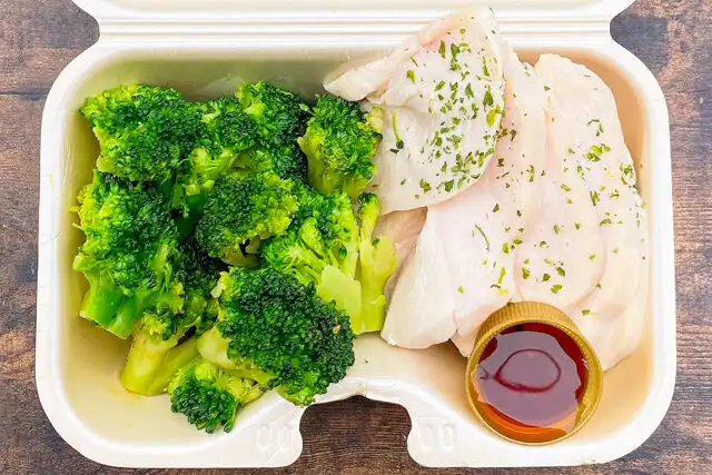 /【タンパク質弁当】低温調理チキン~ノンオイル青じそ~とブロッコリーのボックス
