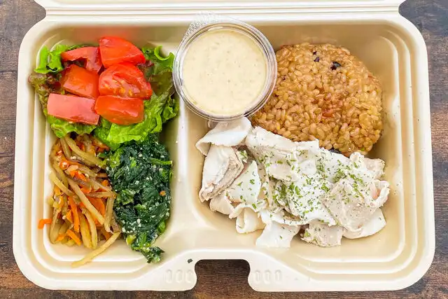 上質なタンパク質、ビタミンミネラル豊富な酵素玄米。トレーニング、ダイエット時の栄養補給にぴったりのランチボックスです。三元豚しゃぶ100gと酵素玄米ごはん、サラダ、副菜、これでほぼパーフェクトなバランスの栄養を取れます。