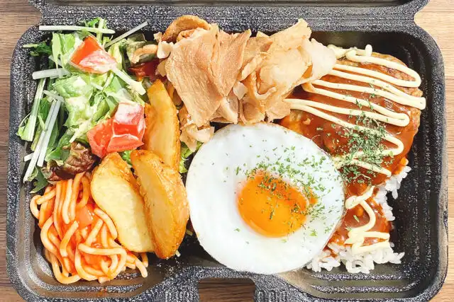 ロケやイベントで人気の洋食ボックスと軽食をご用意しています。ロコモコやオムライス、ロールサンドが人気です。
