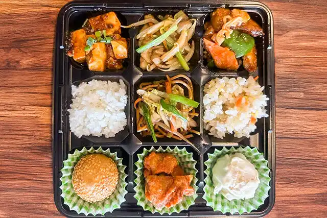 いろいろな味を少しずつ楽しめる、満足感のある中華弁当です。