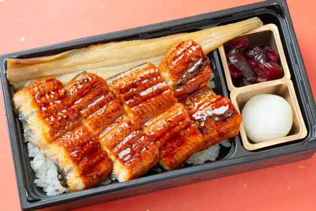 白米200g/うなぎの蒲焼/うなぎのタレ/山椒/穴子1本/香の物/プチデザート