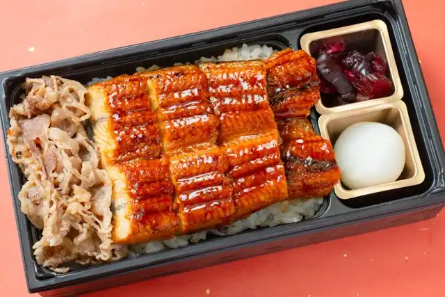 ふっくらと仕上げたうなぎに、甘辛く煮込んだ牛すきを合わせた贅沢なお重です。うなぎの濃厚な旨みと牛肉のコクが重なり合い、ご飯との相性も良く、上品で奥行きのある味わいを楽しめる一品です。