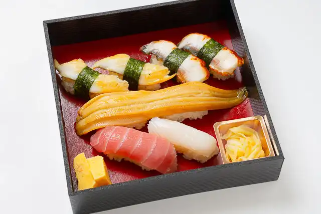 【熨斗対応可】築地魚蔵の弁当に、鰻と穴子たっぷりの握り盛合せが登場しました。濃厚な旨味&食べやすい握りを配達していますので、法事や法要、ランチミーティングにぴったりです。伝統江戸前赤酢寿司の築地魚蔵が自信を持ってお届けする、鰻と穴子好きにはたまらない逸品です。ご注文ください。