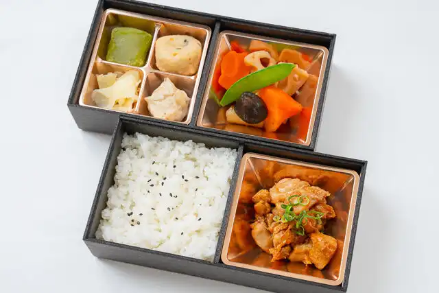 当店自慢の鶏すき2段弁当。厳選した若鶏をすき焼き風に仕上げ、ご飯との相性も抜群です。彩り豊かな付け合わせも魅力的で、ランチミーティングや会議などの場でも好評です。種類も豊富で、季節に合わせた高級弁当もございます。ぜひご注文ください。