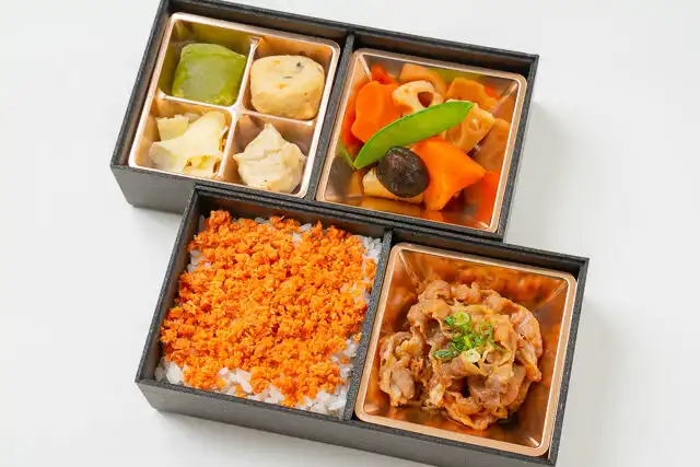 法事や会議などの大切な場面で活躍する、彩菜弁当 虎龍の2段弁当です。牛すき焼きと紅鮭のフレークがたっぷり詰まった、彩り鮮やかな一品。食べごたえも満点です。季節に関係なく、年中おすすめの高級仕出し弁当の一つです。その他の種類も豊富で、ランチミーティングなどにもぴったり。大切な席には、彩菜弁当 虎龍の2段弁当をぜひご利用ください。