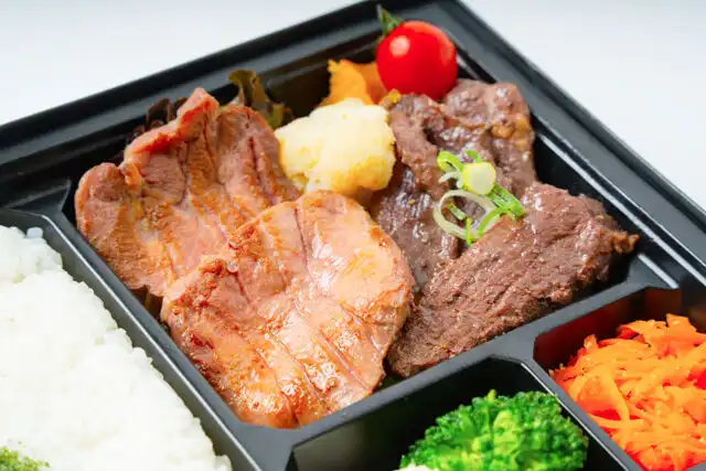 厚切りの牛たんと牛ハラミを楽しめる食べ比べ2種盛り弁当です。副菜は野菜を彩りよく豊富に盛付ております。勉強会・社内会議・お食事会・謝恩会に是非ご利用下さい。牛たんは量目でご提供しているため大きさ・枚数が画像と異なる場合がございます。