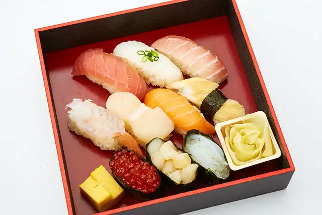 以下の寿司ネタは予告なく変更となる場合がございます旨、ご了承ください。生えび⇒寿司エビ /かに⇒カニ軍艦 /帆立、数の子、ウニ⇒同等の寿司ネタ