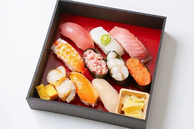 旬の魚介と職人の技が織りなす握り盛り合わせ。落ち着いた会食の場にふさわしい、品格ある味わいと鮮やかな彩りをお届けします。