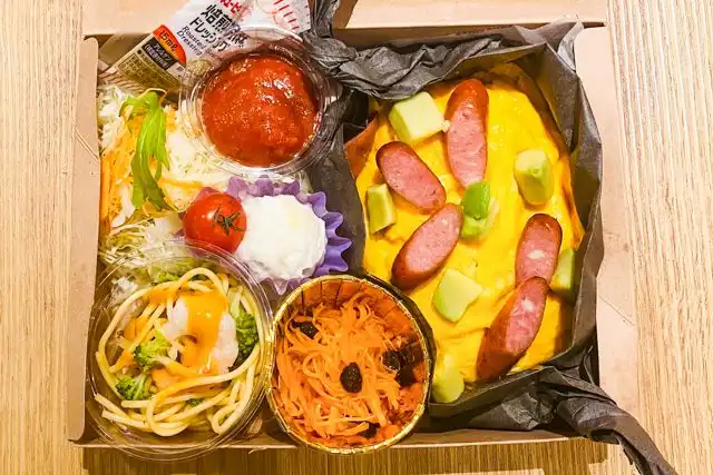 オムライスと彩りの良いスパイシーパスタがメインです。楽しくお召し上がり下さい。