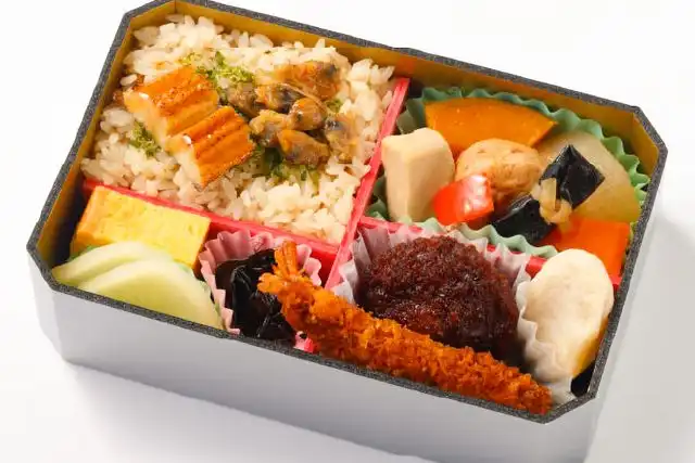 東海道新幹線弁当はJR東海リテイリング・プラス(大阪店)がおすすめする仕出し弁当です。東海道新幹線沿線グルメがいっぱい詰まったお弁当!東京江戸前定番の味「深川めし」「穴子蒲焼」から始まり、静岡の「黒はんぺん」、名古屋ご当地食材「みそかつ」など、東海道新幹線沿線のご当地食材と味わいをイメージして盛り付けたお弁当です。ランチミーティングや特別なお集まりなど、ご利用シーンに合わせて配達いたします。