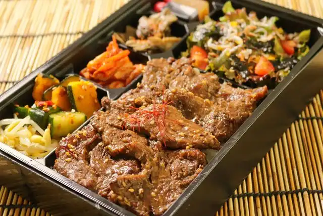 ご飯(200g)/牛ハラミ焼肉/からすみしらすサラダ/キムチ/もやしナムル/旨辛きゅうり/かぼちゃナムル/きのこナムル/焼肉のタレ/自家製ドレッシング
