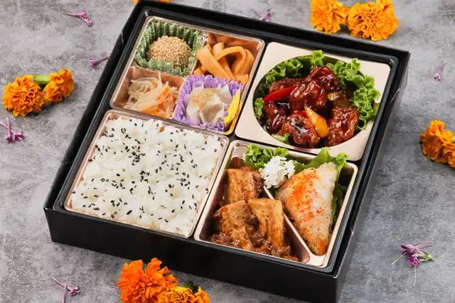 コクのある特製黒酢ダレをたっぷり絡めた「黒酢酢豚」と、本格的な辛旨さが癖になる「四川風麻婆豆腐」を組み合わせました。芳醇な黒酢の酸味と、刺激的な麻婆の辛味は、どちらも白飯との相性が抜群。食欲をそそる濃厚な味わいで、スタミナをつけたい時やガッツリ食べたい時に最適なお弁当です。点心などの副菜も充実し、最後まで飽きずにお召し上がりいただけます。