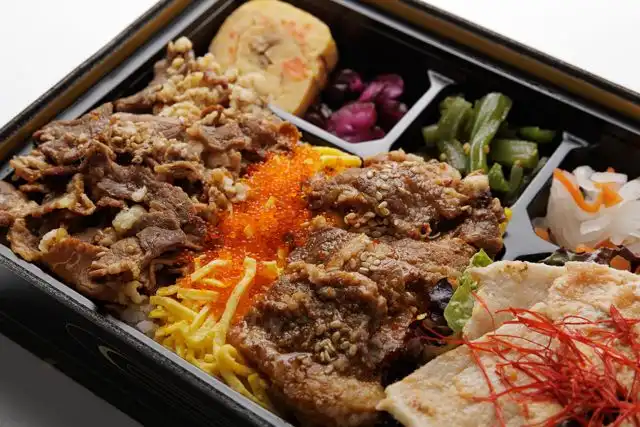 低温調理で仕上げた四元豚モモの味噌焼きと、牛バラ・牛カルビの牛肉2種盛りを楽しめるお弁当。