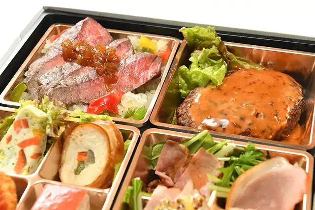 国産牛ロースステーキとハンバーグの8種彩り弁当