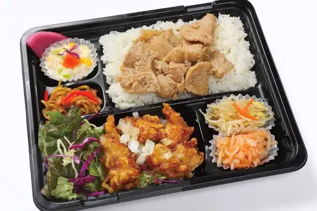 甘辛いタレが食欲をそそる豚カルビと、ジューシーなユーリンチの組み合わせ。ご飯が進む、満足感のあるお弁当です。