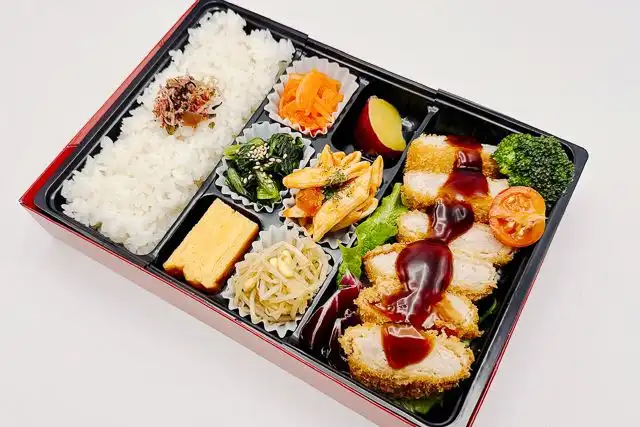 豚ヒレカツのお弁当です。栄養のバランスに考慮し、多くのおかずで楽しんで頂ける様に色とりどりの食材で見た目にも体にも優しく嬉しい内容を心掛けました。
