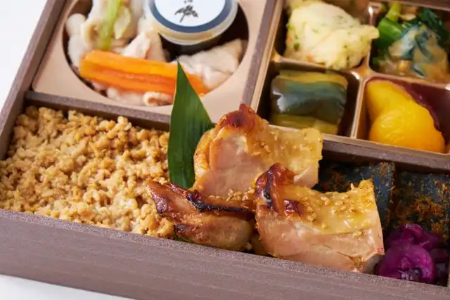 出汁を基本に旨みを重ね、丁寧に焚き上げた煮物はこだわりの味。豚しゃぶは、出汁を纏わせたしっとりとした口当たりに仕上げ、柚子の果汁を効かせた特製のポン酢で召し上がって頂きます。鶏の香味焼きには、赤味噌をベースにしたタレを揉み込み、香り豊かに焼き上げました。和のおもてなしを一折に込めました。至福の美味しさをご堪能下さい。