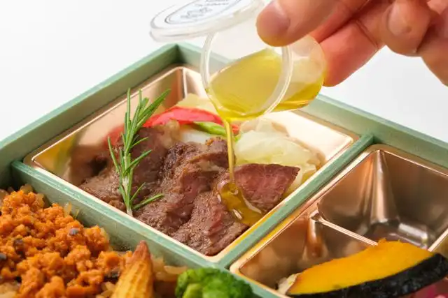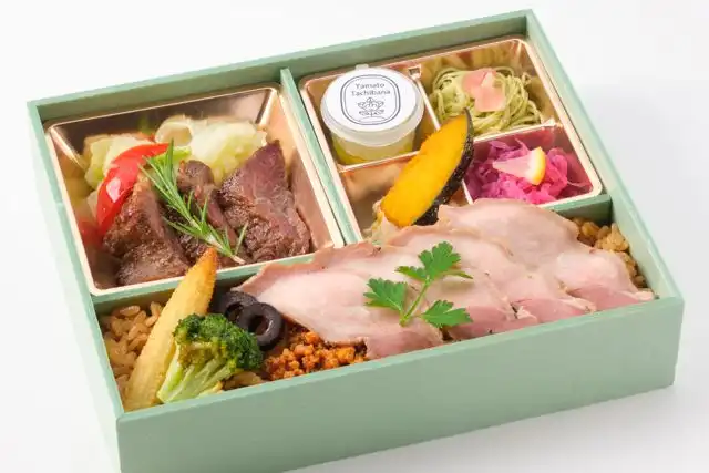 大和橘(やまとたちばな)は、かつて日本に自生していた直径3㎝ほどの小さな実で、「古事記」「万葉集」にも登場するほど古くから存在する、日本固有種の柑橘の原種です。このお弁当には大和橘の果皮をふんだんに使用した「大和橘こしょう」をソースに使用しました。蓋を開けた途端、大和橘の爽やかな香りに包まれます。柚子などとも違う唯一無二の香りをお楽しみください。