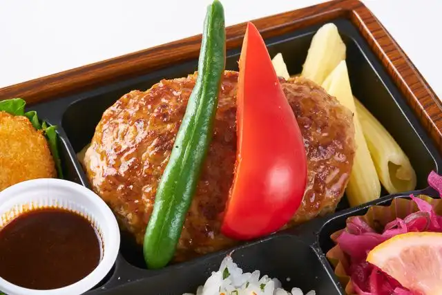 玉ねぎの甘みを引き出した和風ソースが、ジューシーな肉の旨みを格上げします。サクサクの蟹コロや、粒マスタードを効かせたマッシュポテトなど、こだわりを詰め込んだ本格派。会議の合間のリフレッシュにも最適です。