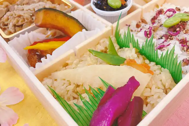 ありきたりな白飯ではなく、春を感じる筍おこわと梅しらすと二色のごはんで飽きのないお弁当となっております。お店こだわりの旨味が凝縮された牛すき焼きに加えて、会席風の創作日本料理を少しずつ取り揃えてお届けいたします。長年「お弁当づくり」にこだわる料理長が手間ひまかけて仕上げました。