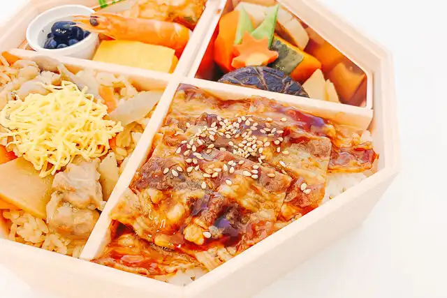 今だけの食材をお楽しみいただける、季節限定のお弁当。鶏の旨味が口の中いっぱいに広がる鶏ご飯など、寒い冬にぴったりの味覚をお楽しみ頂けます。絶妙な火入れ加減で焼き上げた牛カルビは、甘辛で香ばしい味わいが特徴のオリジナルソースをかけて仕上げました。