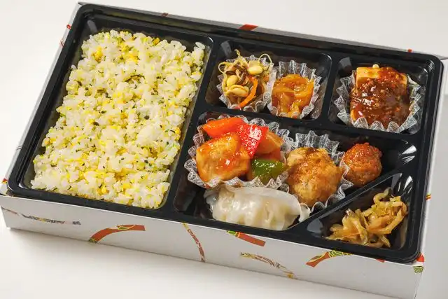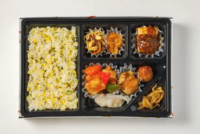酢鶏や麻婆豆腐など、華やかな中華の盛り合わせ弁当