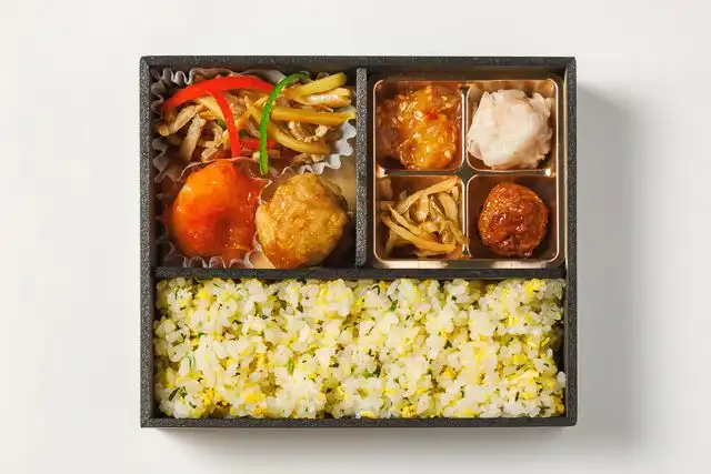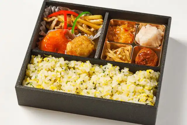 青椒肉絲やエビチリなど人気中華を盛り込んだ定番弁当、バランス良く楽しめる一折りです。
