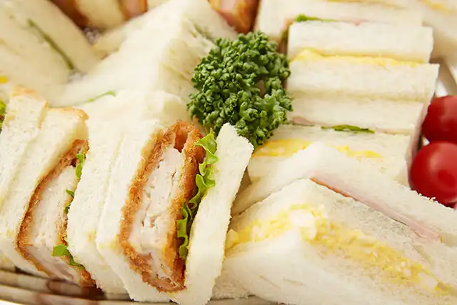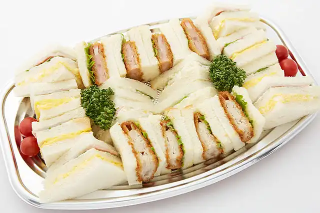 がっつりしたとんかつサンドとハムカツサンドに、定番の玉子ハムサンドとポテトサドも同時にお楽しみください。デリバリーで人気のある絶品の食材を使用したこのプレートは、会議やランチミーティングなど、ご利用シーンに合わせてデリバリーいたします。